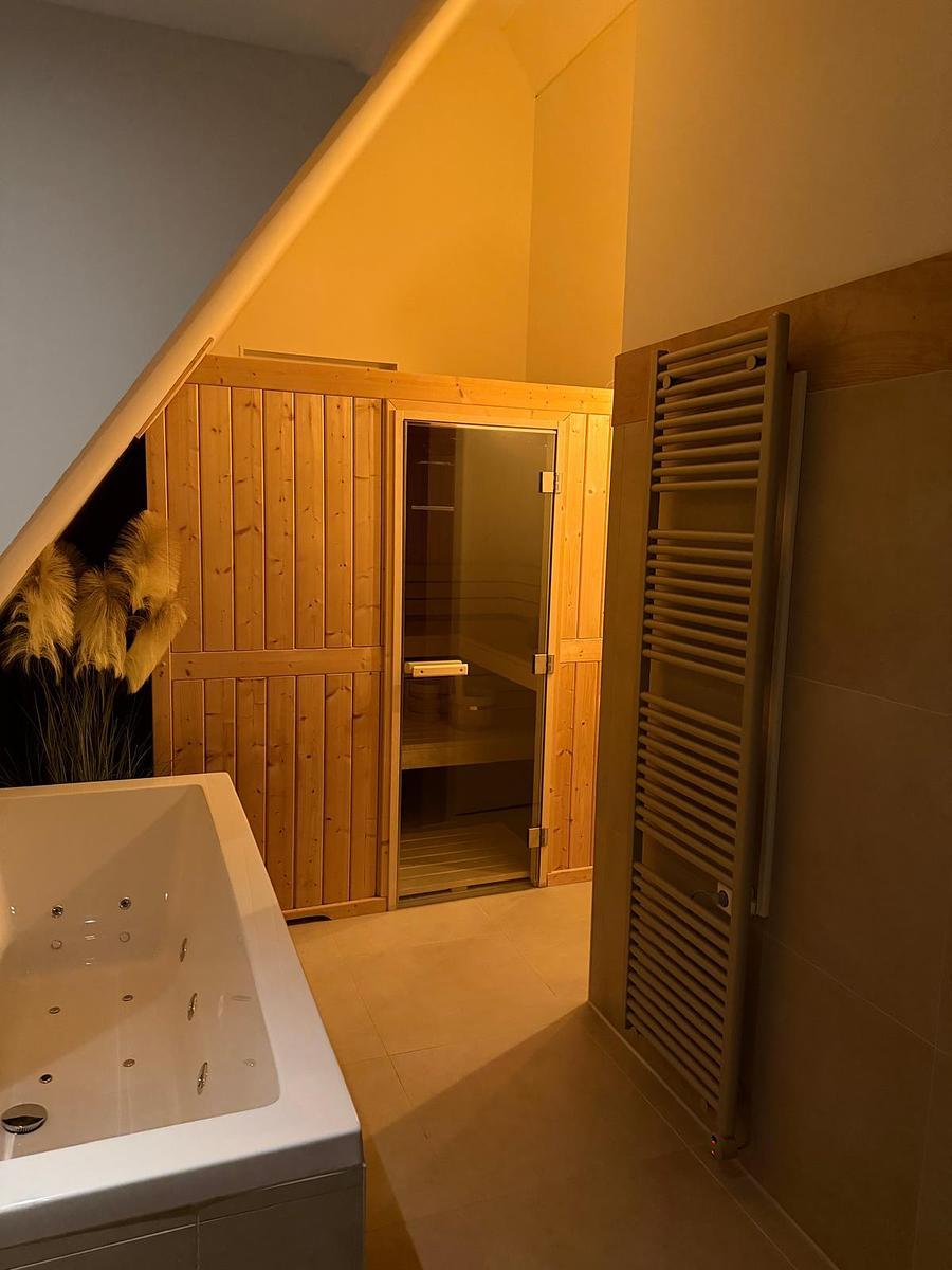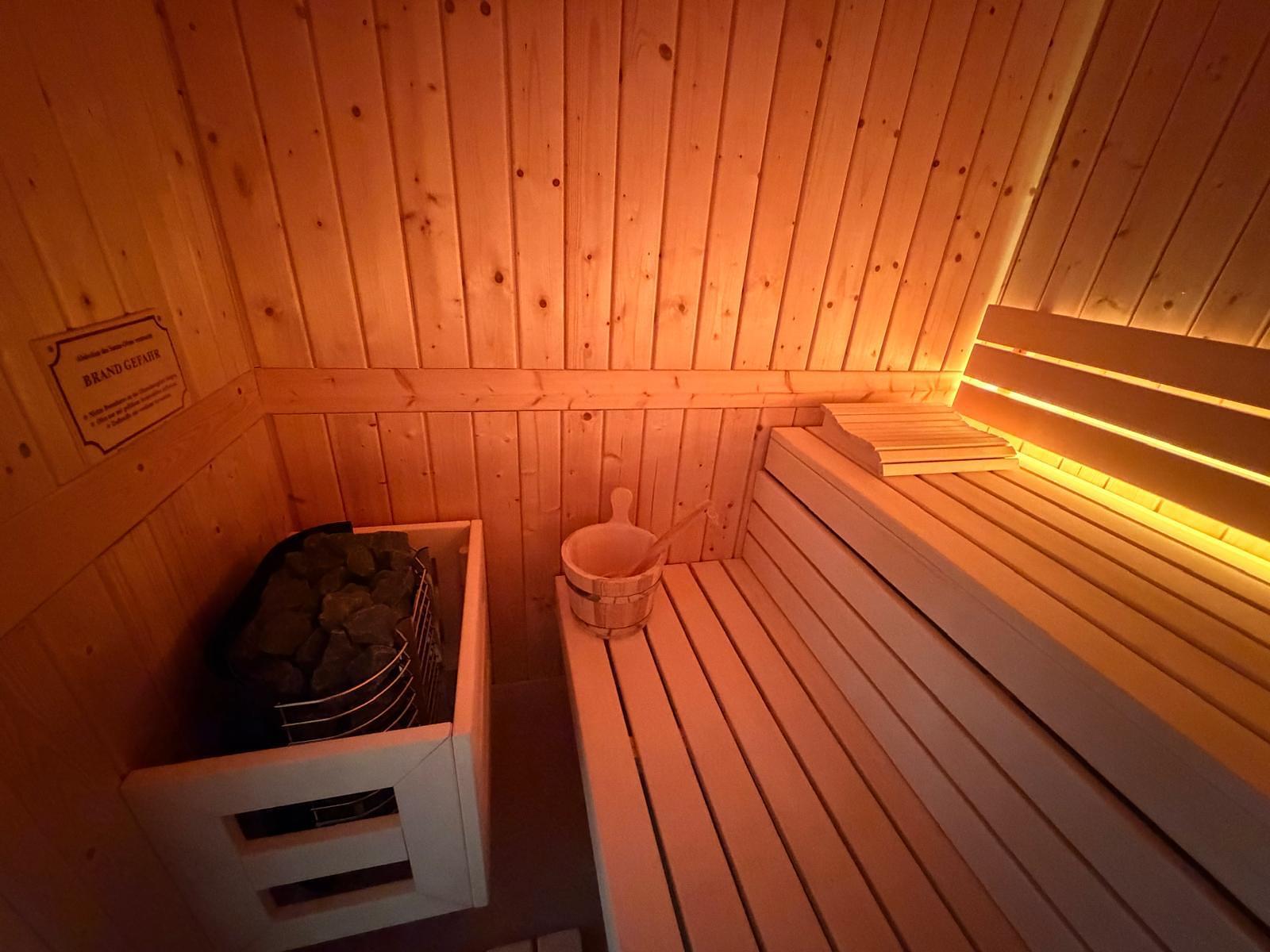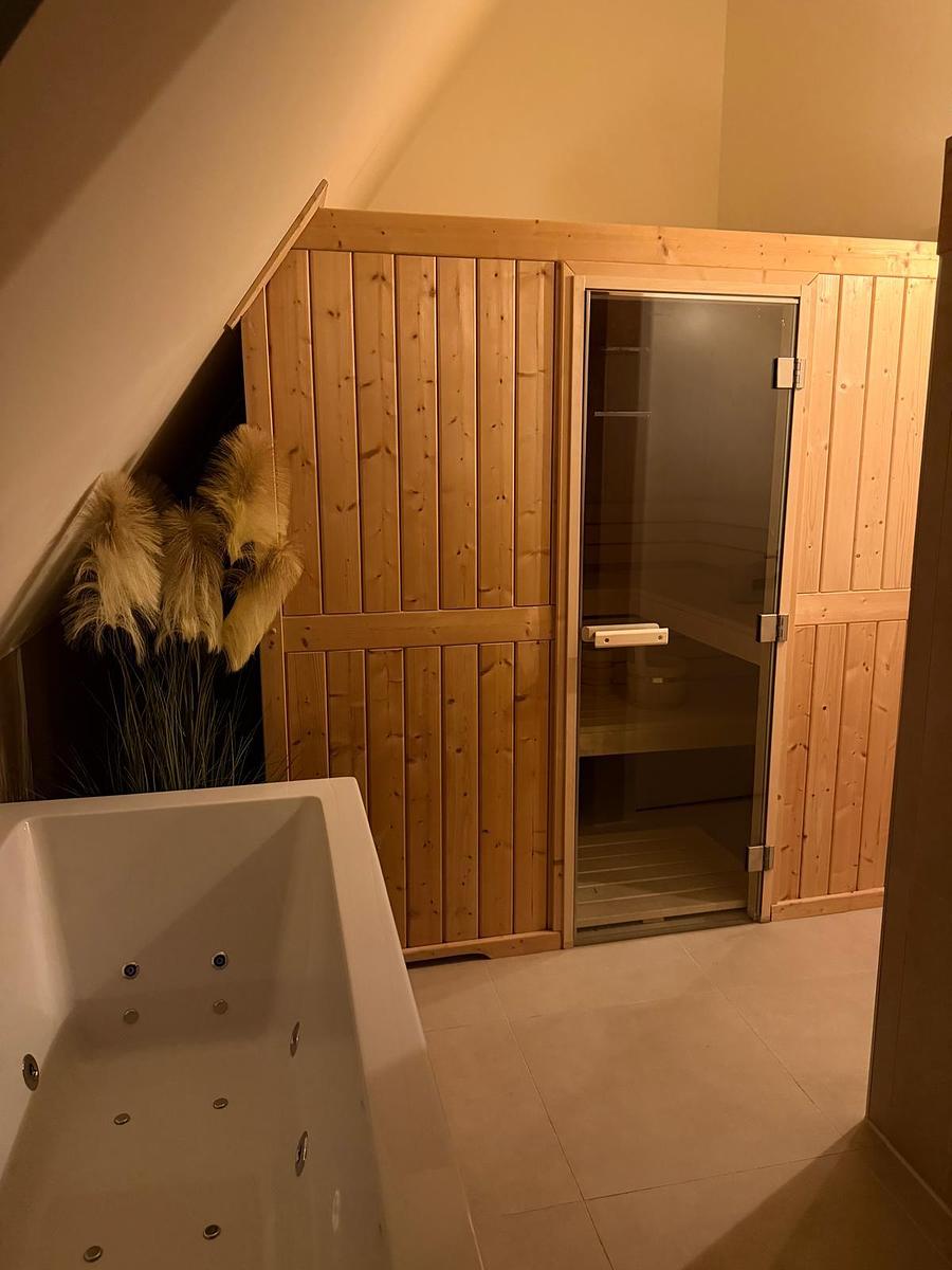 Inside, you’ll find a cozy living room with flatscreen TV, a modern kitchen with combi oven, dishwasher, fridge and coffee maker, and two stylish bedrooms with boxspring beds. The private wellness area takes it to the next level: enjoy a whirlpool, Finnish sauna, mist shower, and sunshower – all under one roof. It’s also wheelchair accessible for extra convenience.