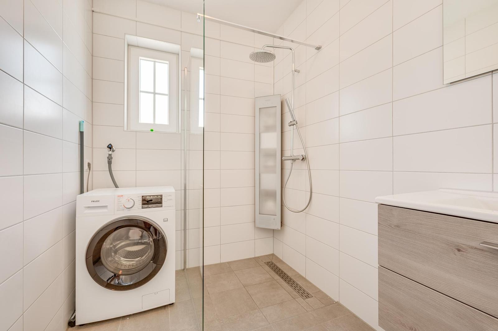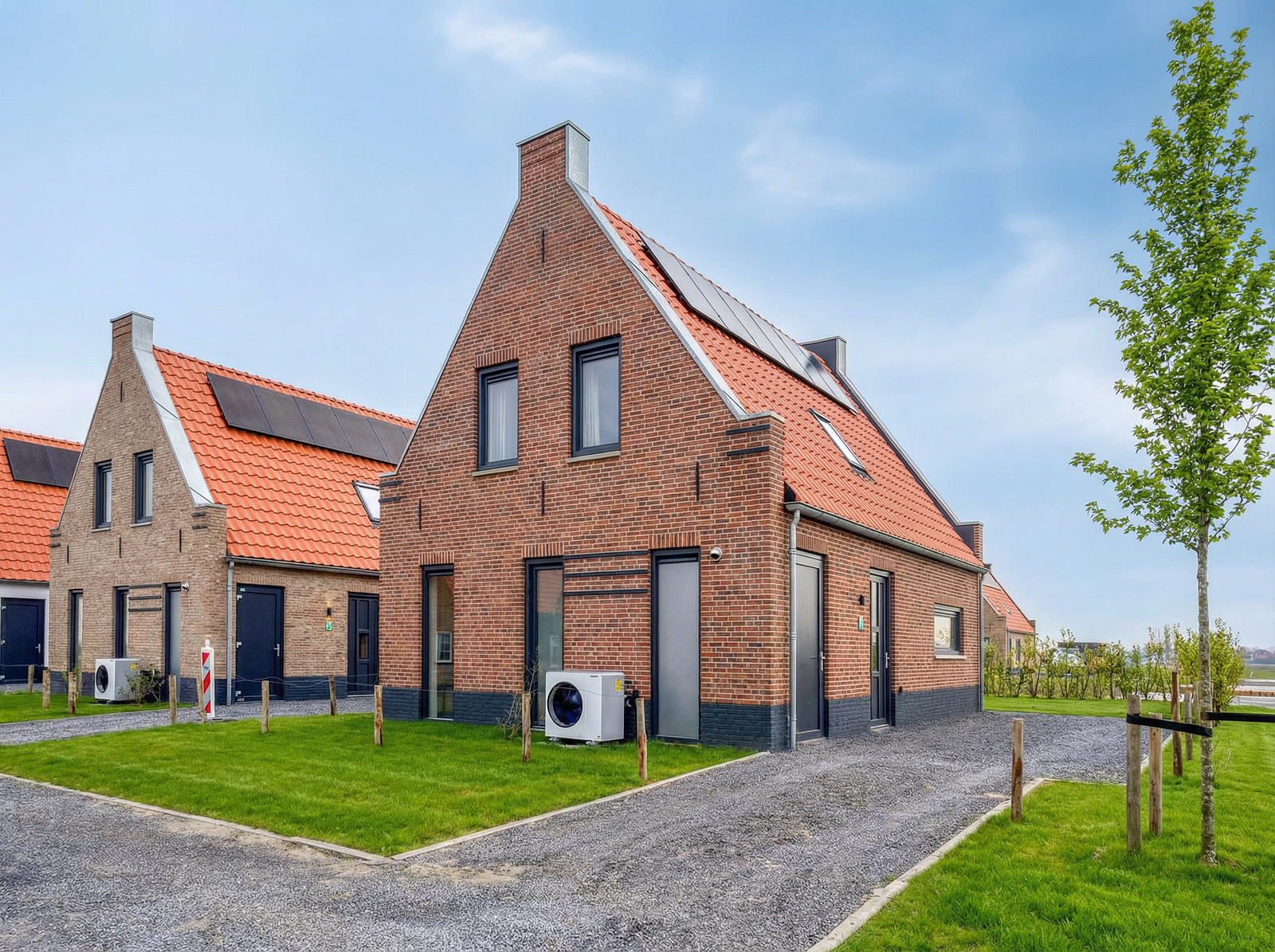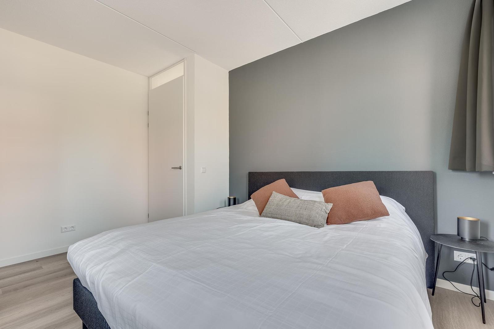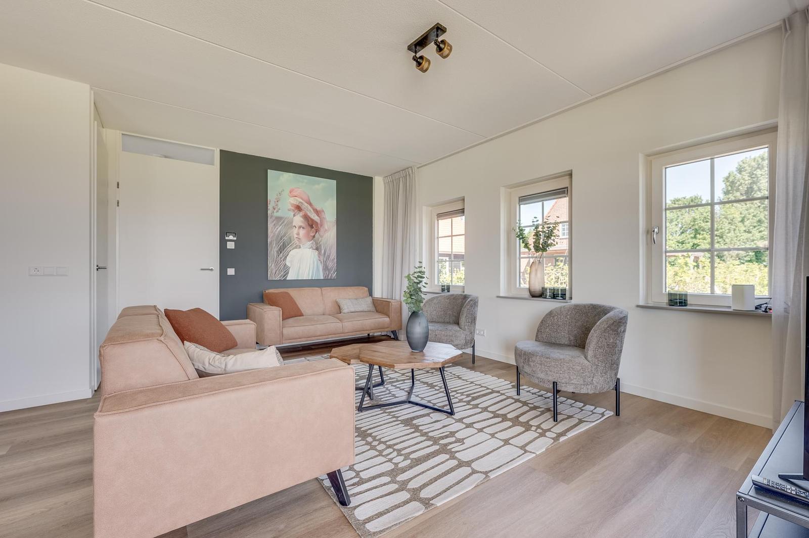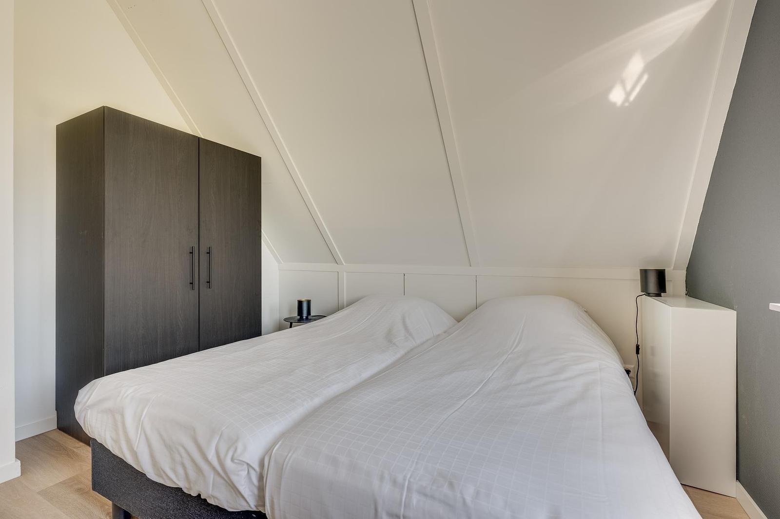 Inside, you’ll find a modern kitchen with combi oven, dishwasher, fridge-freezer and coffee machine, a comfortable sitting area with flatscreen TV, a stylish bathroom, and bedrooms with soft boxspring beds to ensure restful nights. Everything is arranged for comfort and ease.